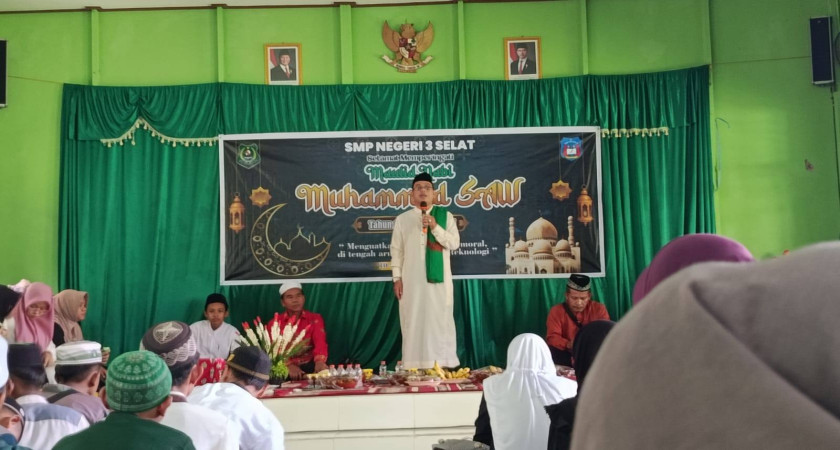 Kapuas, 10 September 2025 - Suasana khidmat menyelimuti aula SMPN 3 Selat pada Rabu pagi, 10 September 2025. Seluruh warga sekolah, mulai dari siswa, guru, hingga staf, berkumpul untuk merayakan Maulid Nabi Muhammad SAW. Acara ini mengambil tema yang relevan dengan kondisi saat ini, yaitu "Menguatkan Keimanan dan Moral, di Tengah Arus Modernisasi Teknologi."